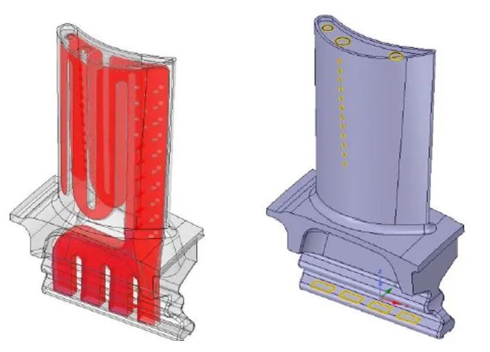 燃气涡轮叶片为了承受高负荷、高温度的工作环境,一般需要设计复杂的外部几何型面、内部冷却流道和冷却气膜孔结构,随着燃气涡轮产品的工作温度和转速不断提高,产品的冷却设计等结构也越来越复杂,这无疑大大增加了CFD仿真前处理和网格划分的难度、也降低仿真工程师的工作效率。