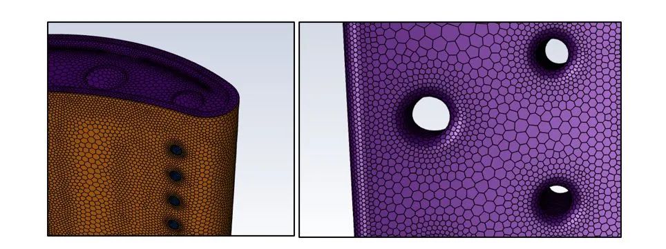 涡轮前缘气膜孔和尾部扰流柱多面体网格