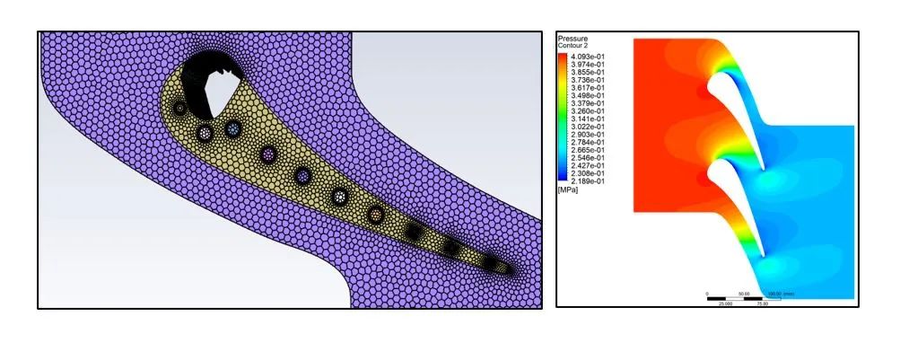 某燃气涡轮研究单位使用Ansys Fluent Meshing网格工具和Fluent求解器对NASA的C3X气冷涡轮叶片进行Mosaic多面体网格剖分和流热耦合仿真计算。相比于传统的四面体网格,该方法极大的提升了网格划分效率和网格质量,仿真工程师在极短的时间内即可完成之前使用ICEM CFD需要耗费数天才能完成的网格划分任务。
