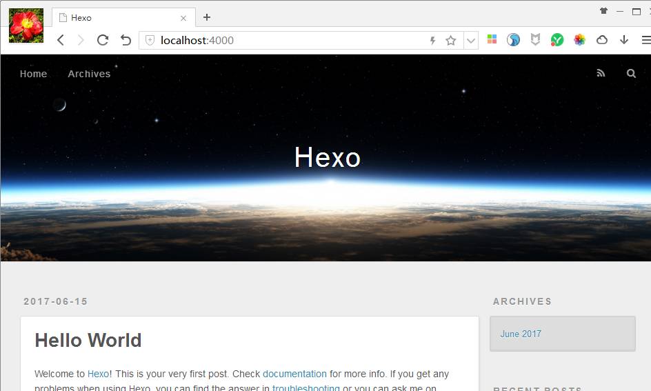 http://localhost:4000。若能看到博客页面,表示已经安装完毕。