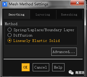 (2)单击Setting按钮,弹出Mesh Method Setting对话框,Method选择Linearly Elastic Solid。