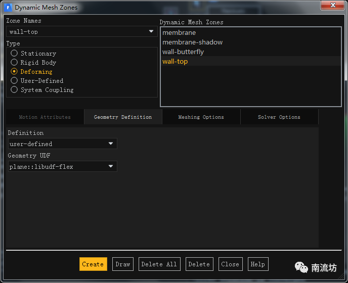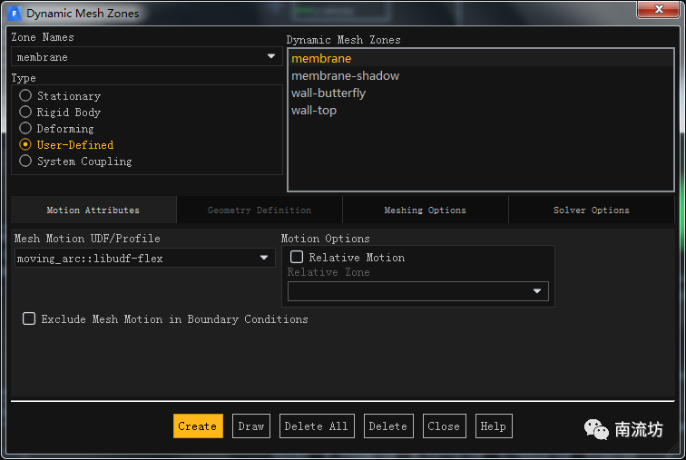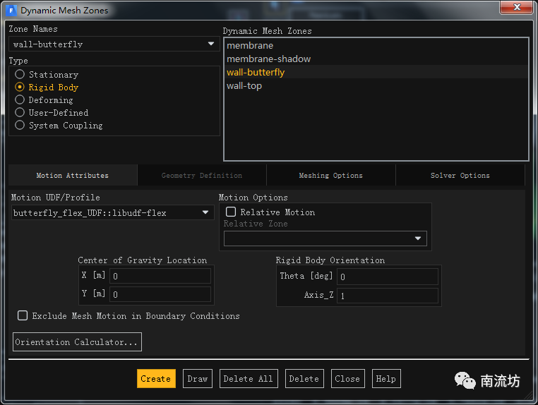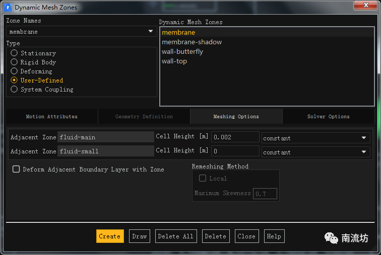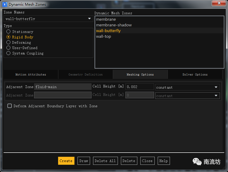 (3)在Dynamic Mesh Zones中设置动网格区域。