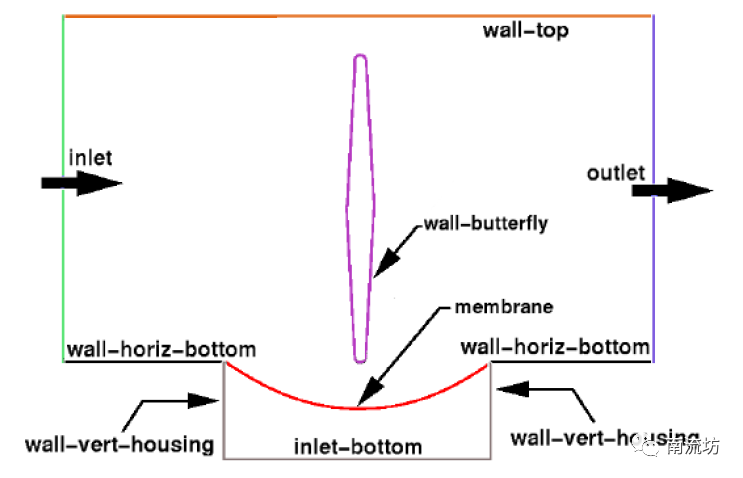 本教程的目的是说明如何使用用户定义函数(UDF)来控制带有旋转叶片和柔性振荡膜的通用流动装置的动态网格。旋转叶片和振荡膜的运动具有较大的振幅,需要采用局部重划。叶片的旋转、膜的振荡以及节点沿外壳顶壁的滑动通过UDF进行定义和控制,UDF利用了动态网格模型特有的三个宏。
