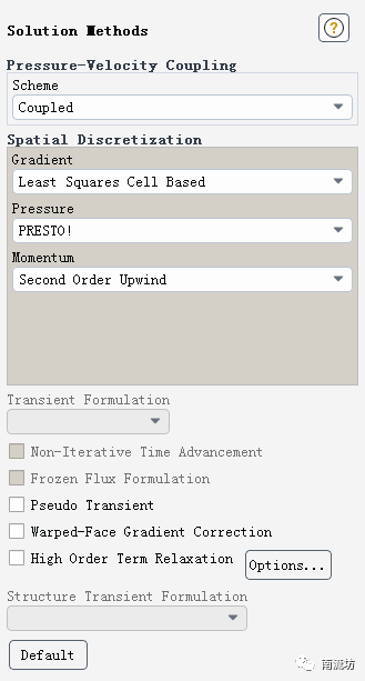 Pressure选择PRESTO!,取消勾选Pseudo Transient。