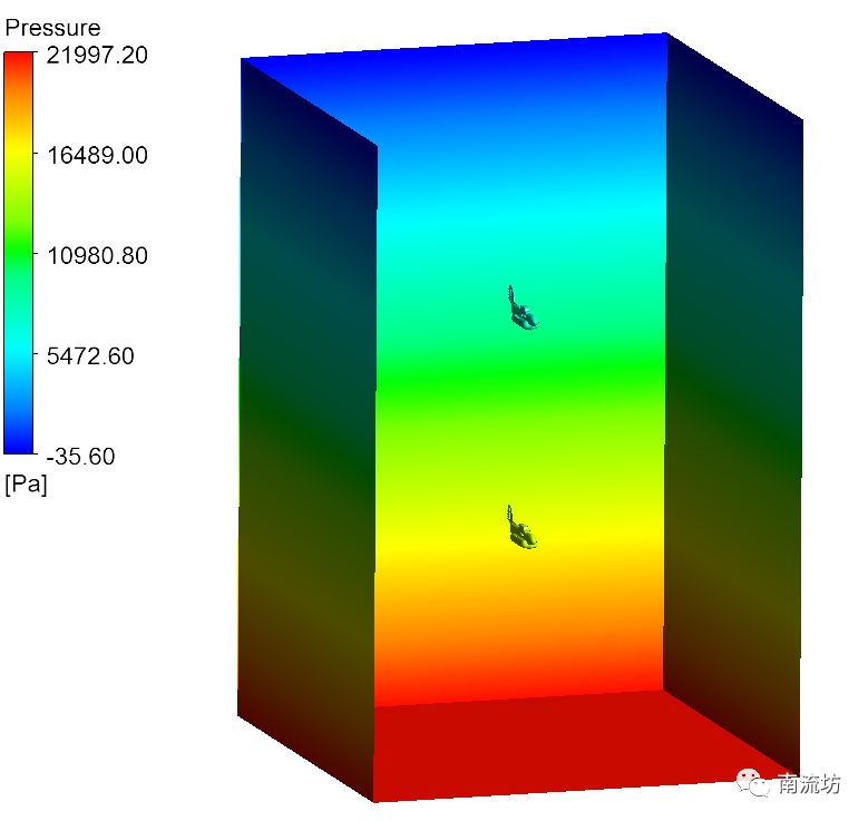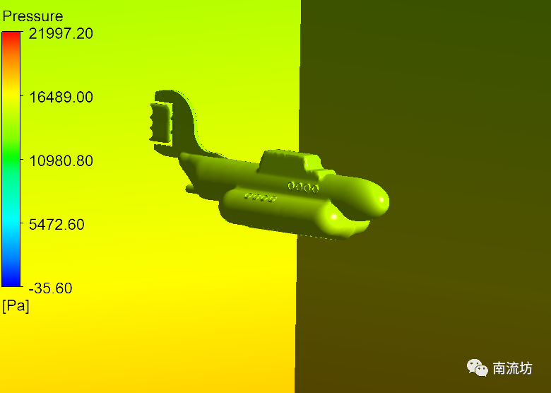 在这个例子中,两个玩具潜艇被放置在不同深度的水池中。我们将使用Fluent模拟可视化潜艇的压力等值线。