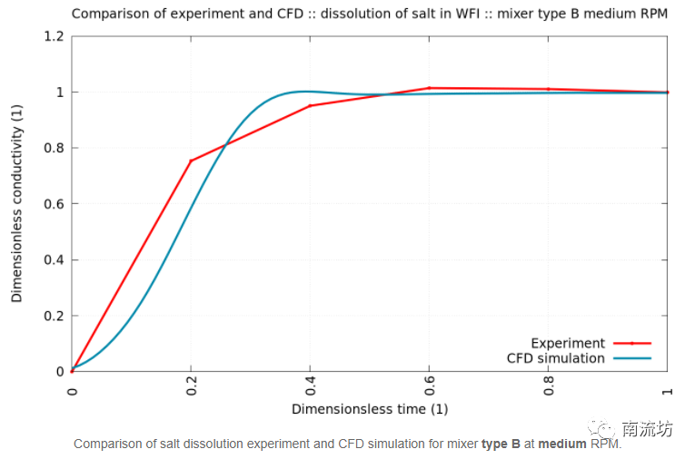 该算例是建立一个CFD模拟模型来预测盐在注射用水(WFI)中的溶解。一旦CFD模型成功地复制了实验(使用不同的搅拌器和转速)且具有足够的精度,就可以使用相同的模拟方法来预测其他搅拌器的盐溶解。这确保了整体混合性能保持不变,同时允许工程设计人员自由更新设备。一旦确定了合适的混合器(容器)和相应的转速,就可以以类似的方式使用不同的CFD模型,以确保不违反临界剪切速率值。