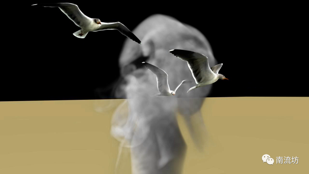 几只海鸥飞过烟云,展示翅膀周围的气流。在这个场景中,用这种方法模拟实现了>1000倍的加速