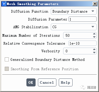 在Smoothing选项卡中,Method选择Diffusion,单击Advanced按钮弹出对话框,Diffusion Parameter设置为1。