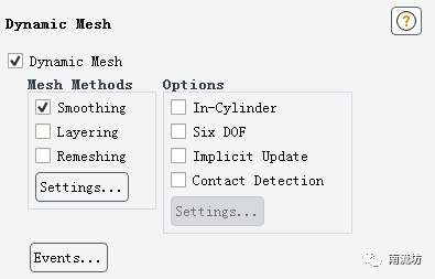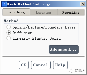 (1)单击主菜单中Setting Up Domain→Mesh Models→Dynamic Mesh按钮启动的Dynamic Mesh对话框,选择Smoothing,单击Settings按钮弹出Mesh Method Settings对话框。