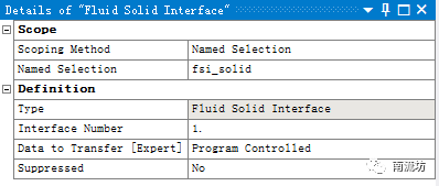 (5)右键单击Transient选择insert→Fluid Solid Interface,Named Selection选择fsi_solid。