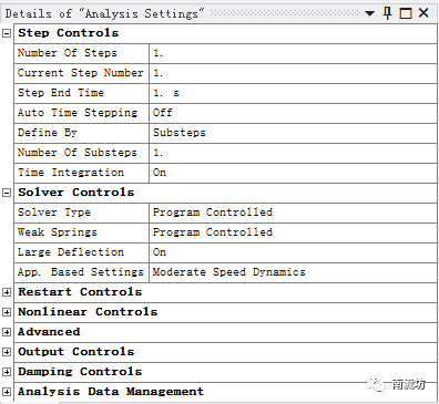 (6)单击选择Analysis Settings,Auto Time Stepping选择Off,Number Of Substeps设置为1。