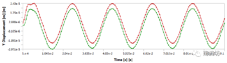 (4)右键单击Transient选择insert→Displacement,Geometry选择管道中间位置面。在Y Component输入0.000025*sin(50.4*360*time)。
