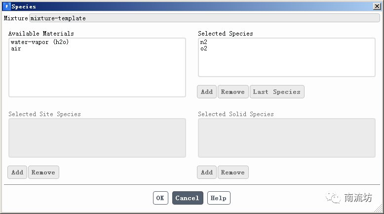 设置混合物,在属性中单击Mixture Species旁的Edit按钮,设置混合物组分。