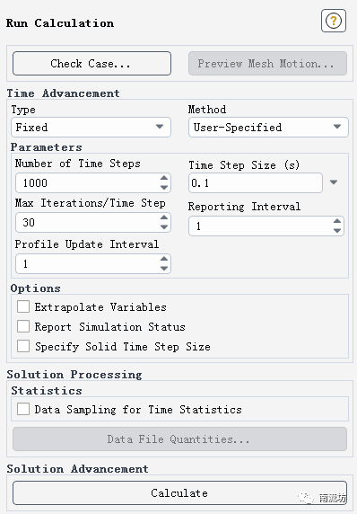 在Time Step Size填入0.1,Number of Iterations中输入1000,单击Calculate开始计算。