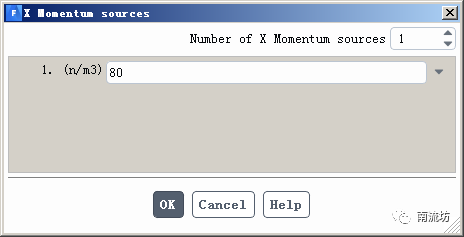 在Source Terms选项卡中,设置X Momentum动量源项为80n/m3。
