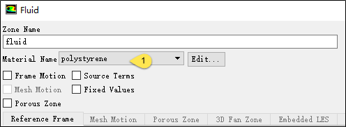 鼠标双击右侧设置面板中Zone列表框下的fluid列表项,弹出Fluid设置框