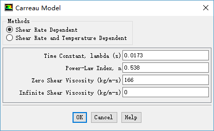 选择Viscosity下拉列表项Carreau Model,弹出Carreau Model设置对话框,按