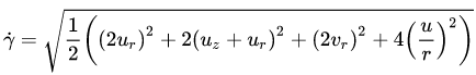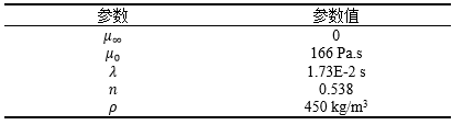 式中,μ为无穷大剪切率粘度;μ0为零剪切率粘度;λ为单位时间参数;n为无量纲参数;γ为剪切率,圆柱坐标系下剪切率可写为: