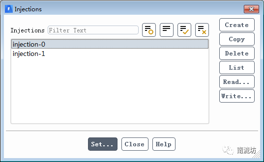 (1)单击主菜单中Physics→Discrete Phase→Injections按钮启动的Injections面板。单击Create按钮设置入射点。