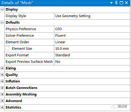 (1)双击A3栏Mesh项,进入Meshing界面,在该界面下进行模型的网格划分。