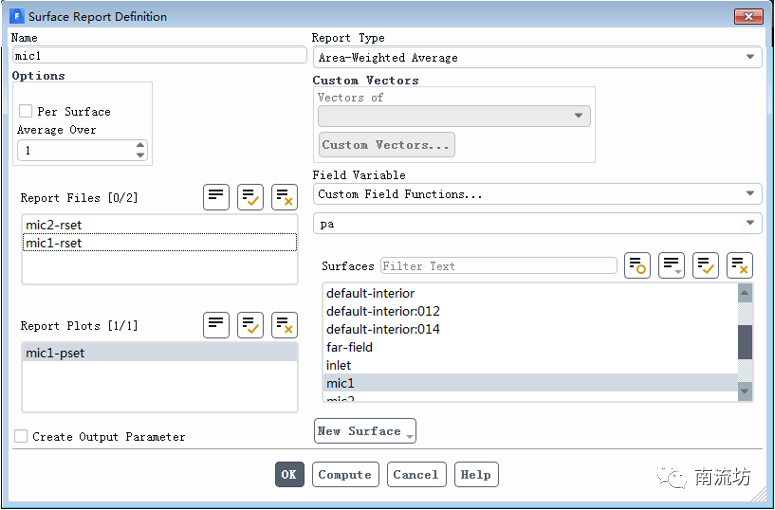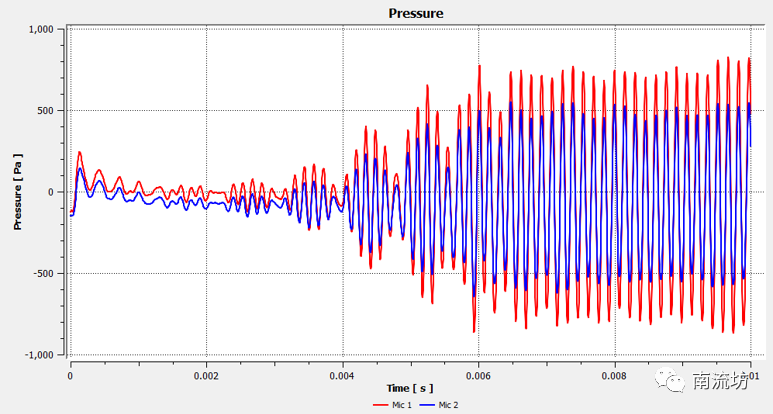 (4)设置监测点mic1和mic2的声压值随时间变化。
