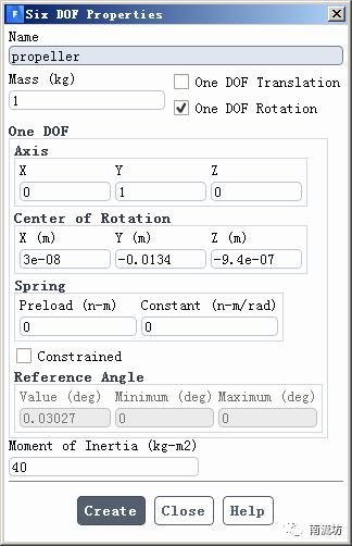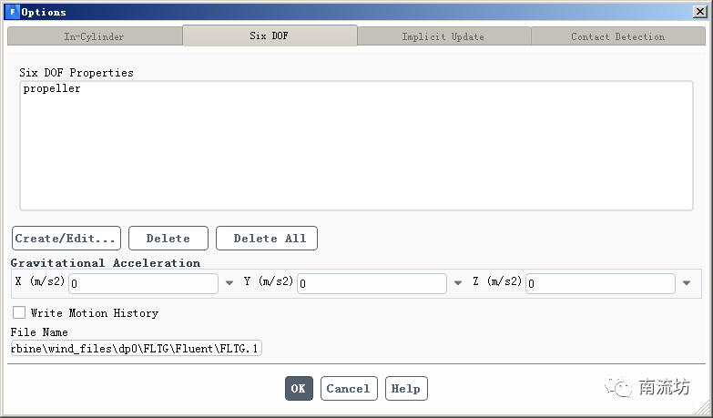 (1)双击Dynamic Mesh按钮,弹出Dynamic Mesh面板,options中勾选Six DOF,单击Settings按钮弹出options对话框,分别创建Six DOF模型。