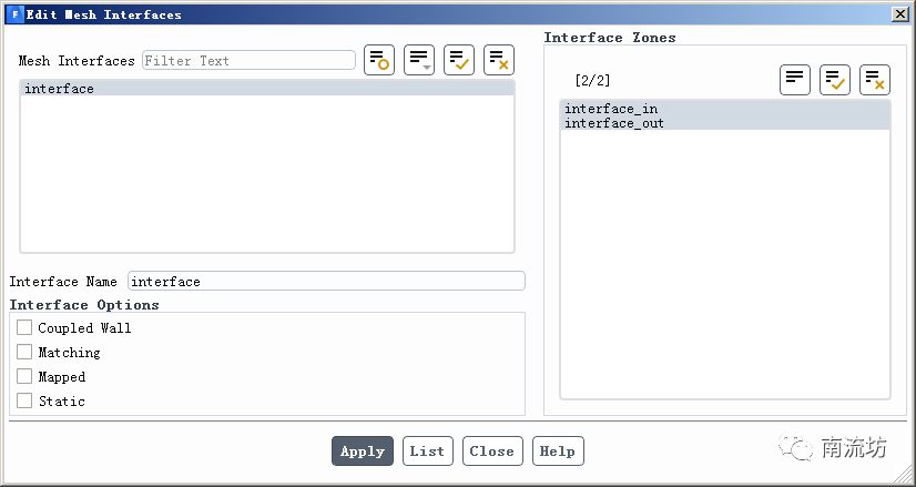 (1)单击主菜单中Domain→Interfaces→Mesh按钮启动的Interface面板。