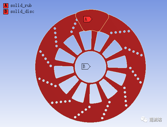 (2)依次右键选择固体计算域,在弹出的快捷菜单中选择Create Named Selection,输入名称solid_rub和solid_disc,单击OK按钮确认。