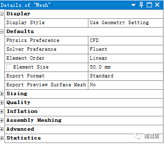 (1)双击A3栏Mesh项,进入Meshing界面,在该界面下进行模型的网格划分。