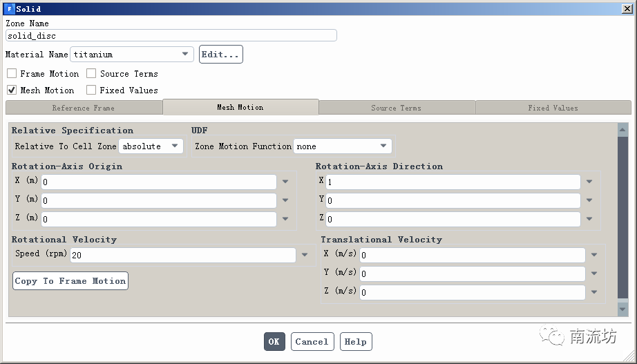 (4)在Cell Zone Condition中,设置solid_disc的参数如下图所示。