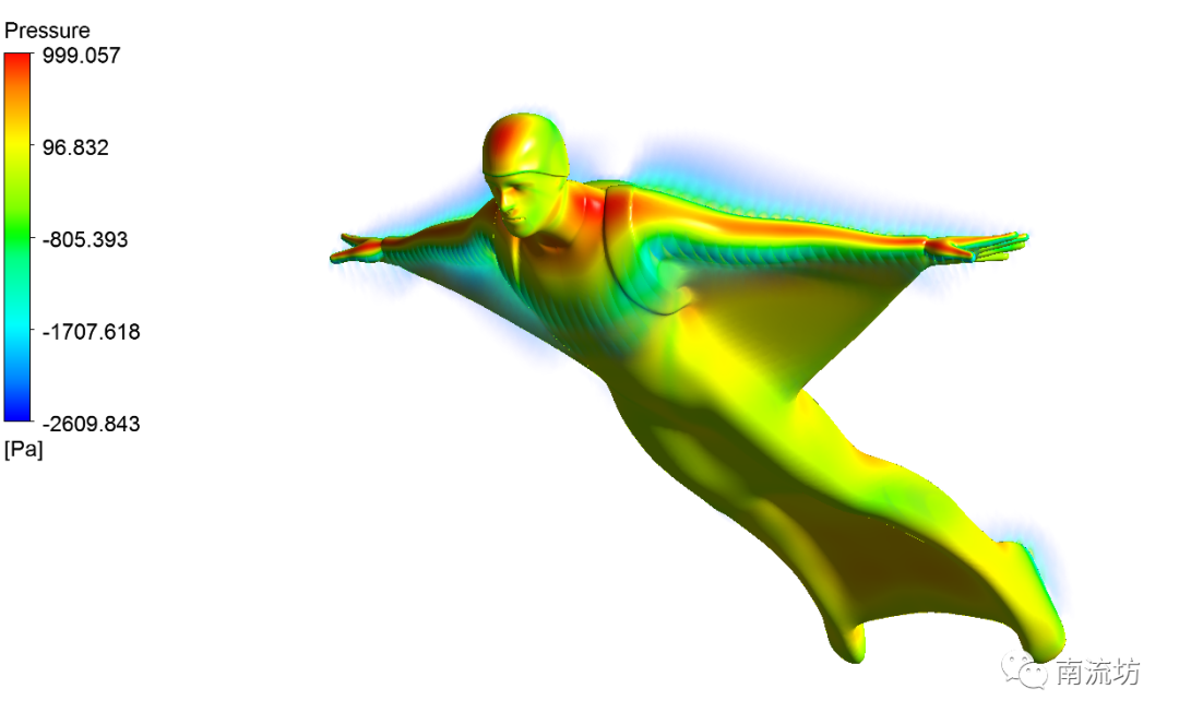 (1)进入CFD-Post界面,在对称面位置显示速度场云图,桥梁表面显示压力分布。