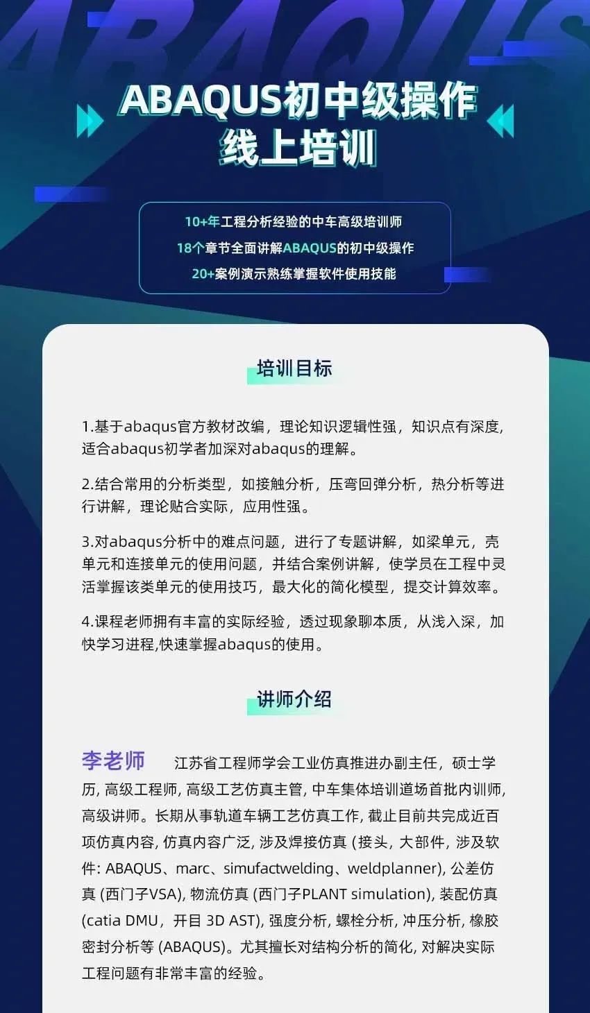 说起李老师,小编的崇拜之情油然而生,那是相当的厉害了!李老师长期从事轨道车辆工艺仿真工作,截止目前共完成近百项仿真内容,仿真内容广泛,涉及焊接仿真(接头,大部件,涉及软件:abaqus、marc、simufactwelding、weldplanner),公差仿真(西门子VSA),物流仿真(西门子PLANT simulation),装配仿真(catia DMU,开目 3D AST),强度分析,螺栓分析,冲压分析,橡胶密封分析等(abaqus)。尤其擅长对结构分析的简化,对解决实际工程问题那可是有非常丰富的经验。
