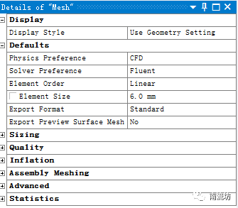 (6)网格参数设置,在Element Size中输入6mm,在Quality中,Smoothing选择High。