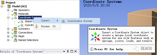 (3)右键Model,插入Symmetry,再右键Symmetry,插入Periodic Region,依次选择周期边界。