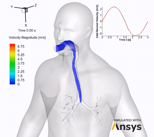 通过对吸入器如何将药物输送到肺部进行建模,模拟可以帮助医疗设备公司改善吸入器的设计,并帮助医生培训患者如何使用吸入器以达到最佳效果。