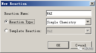 (2)单击New按钮,弹出New Reaction对话框,Reaction Name输入WAX,单击Close按钮关闭对话框。