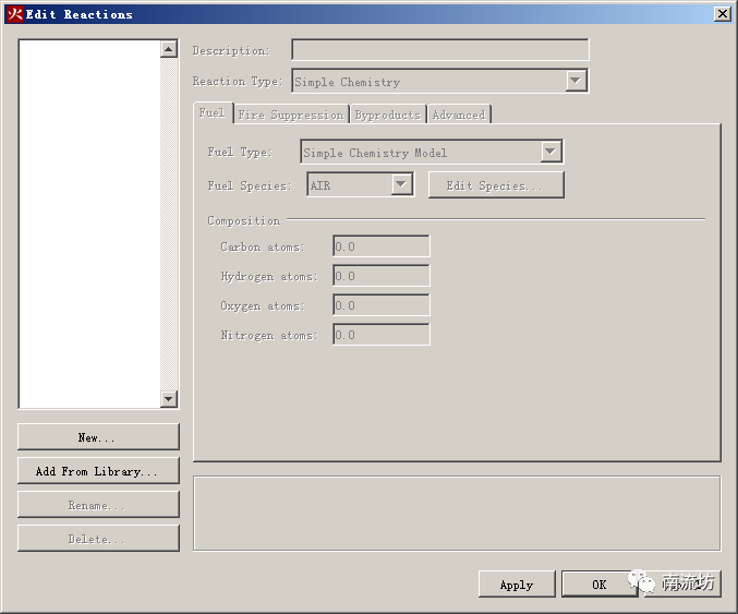 (1)单击主菜单Model→Edit Reactions按钮,弹出Edit Reactions对话框。