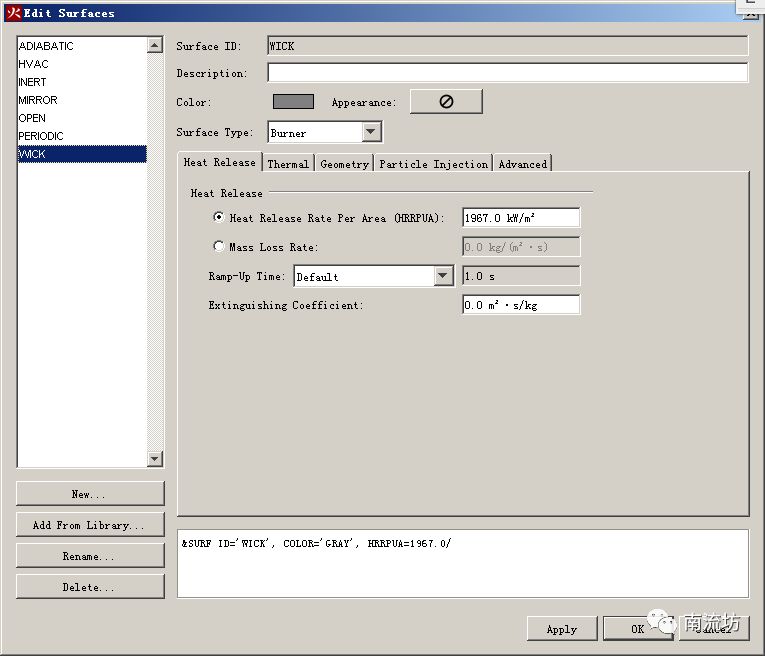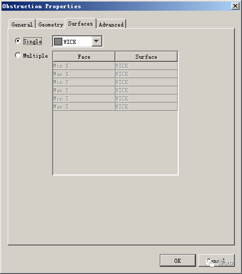 (3)在Edit Surfaces对话框中,设置WICK的参数如下。