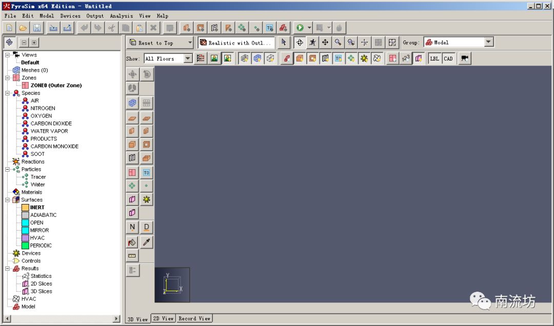(1)在Windows系统下执行“开始”→“所有程序”→PyroSim 2018,启动PyroSim程序。
