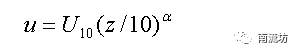 在室外风环境模拟中,来流按风廓线分布,即不同高度的来流速度呈如下指数分布: