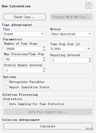 在Time Step Size填入0.0001,Number of Iterations中输入2000,单击Calculate开始计算。