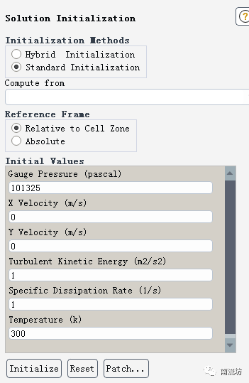 (1)单击主菜单中Solving→Initialization按钮,弹出Solution Initialization(初始化设置)面板。