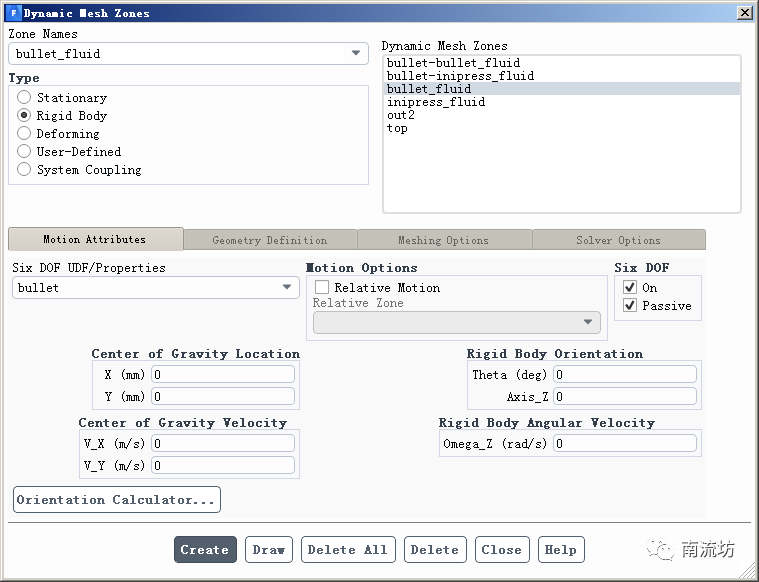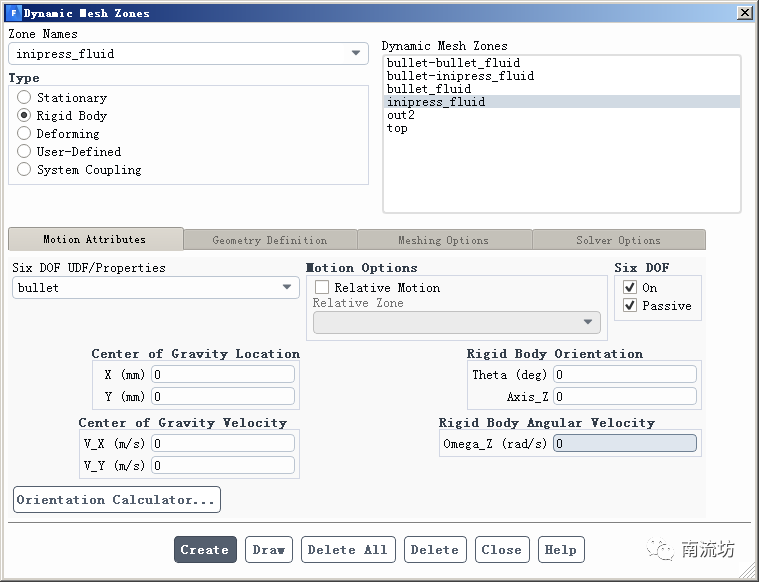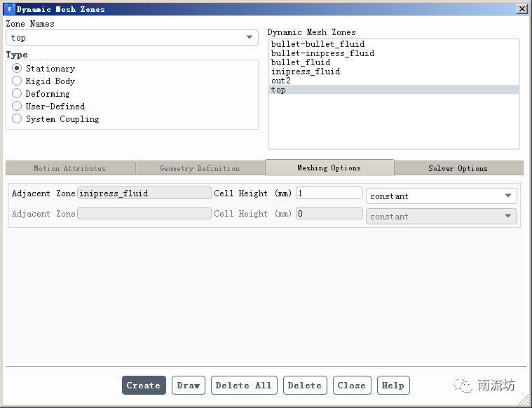 (3)在Dynamic Mesh Zones中设置动网格区域。
