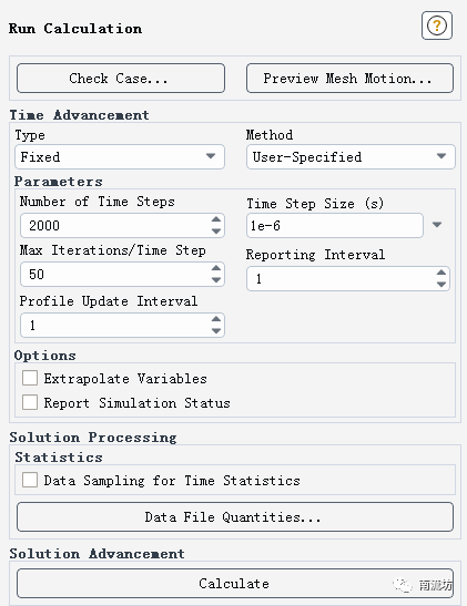 在Time Step Size中输入1e-6,在Number of Time Steps中输入2000,单击Calculate开始计算。