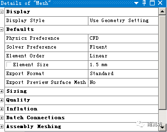 (1)双击A3栏Mesh项,进入Meshing界面,在该界面下进行模型的网格划分。