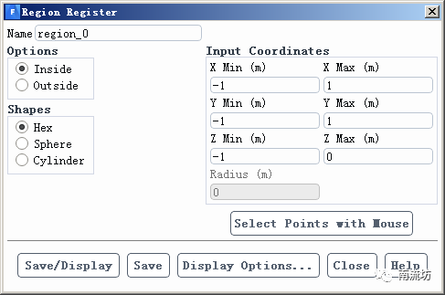 (2)单击主菜单中Domain→Adapt→Refine按钮,弹出Adaption Controls对话框,单击Cell Registers→New→Region按钮,弹出Region Register对话框,设置水区域。