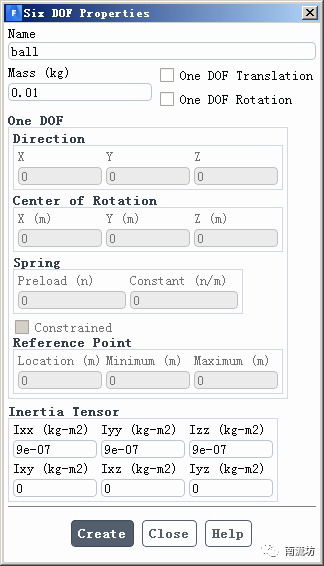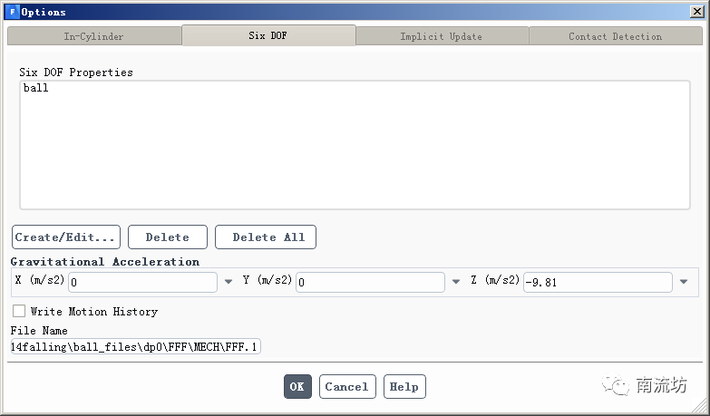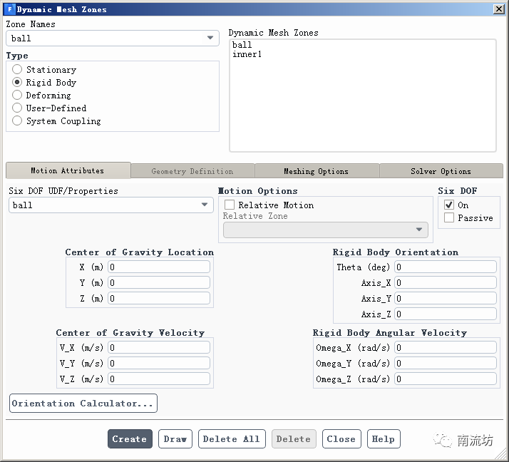 (2)在Dynamic Mesh面板,options中勾选Six DOF,单击Settings按钮弹出options对话框,分别创建两个Six DOF模型。
