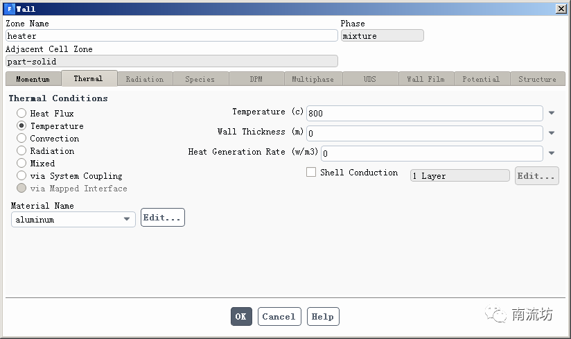(2)在边界条件面板中,双击heater,Temperature输入800,单击OK按钮确认退出。