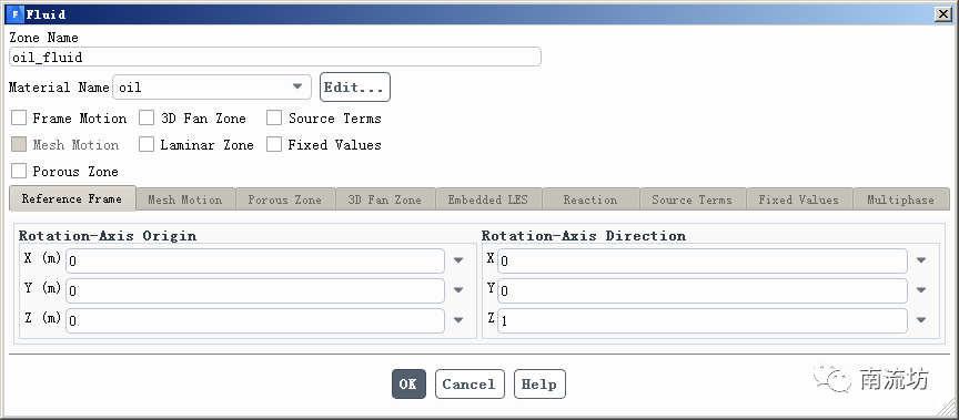 (1)单击主菜单中Setting Up Physics→Zones→Cell Zone Conditions面板。设置外部管道内材料为水,内部管道内材料为油。