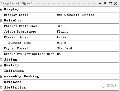 (1)双击A3栏Mesh项,进入Meshing界面,在该界面下进行模型的网格划分。